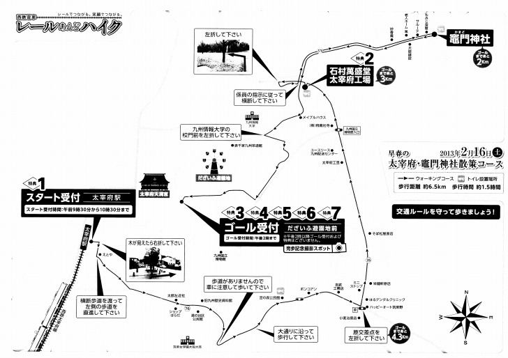 西鉄電車レールあんどハイクは無事終了したのですが、距離的にちょっと物足りなかったのとせっかく太宰府まで来たのでもっといろんな所へ行って見たかったので、ゴール受付後「勝手にウォーキング大会in太宰府」を開催してきました。その模様は次回の日記に書きたいと思います。