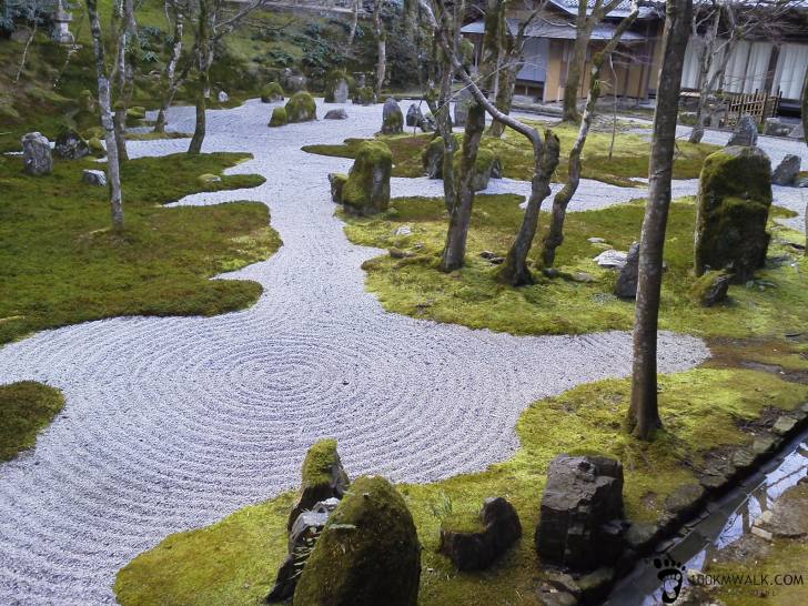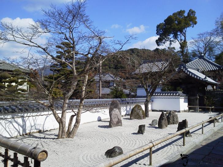 【光明禅寺】禅僧・鉄牛円心により1287年に開山した光明禅寺は、一般的には苔寺の名で親しまれ、清らかな庭園は太宰府でも随一の風情を味わえます。前庭は石を7・5・3の15石で「光」字に配置した九州唯一の仏光石庭です。苔で陸を、白石で海を表した後庭は、長汀曲浦の画線で描いた「一滴海の庭」と呼ばれています。江戸時代には、太宰府天満宮に仕える人々とその家庭の菩提を弔っていました。