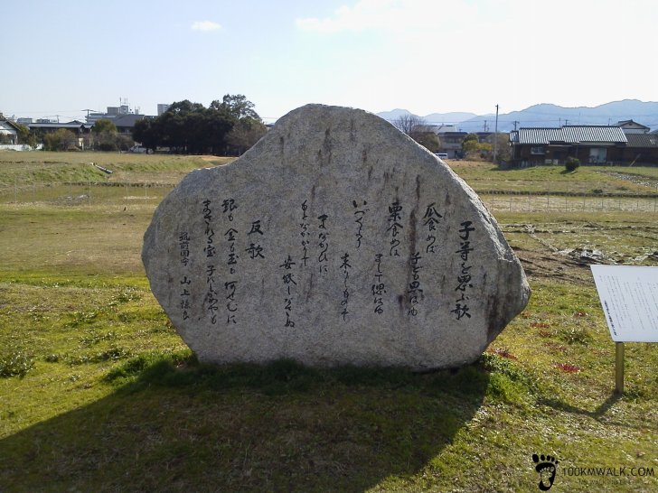 【太宰府学校院跡】8世紀初め、政治体制が整うにつれ官吏の養成が急務となり、地方に国学が置かれた。太宰府学校院は西国の役人を養成する機関で、今は水田となり石碑が残るのみだが、当時は数百人もの学生が、一流の教授に厳しく鍛え上げられていた。